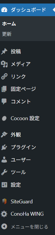 - まず、ダッシュボードの左カラムにある「ユーザー」の「プロフィール」を選択。